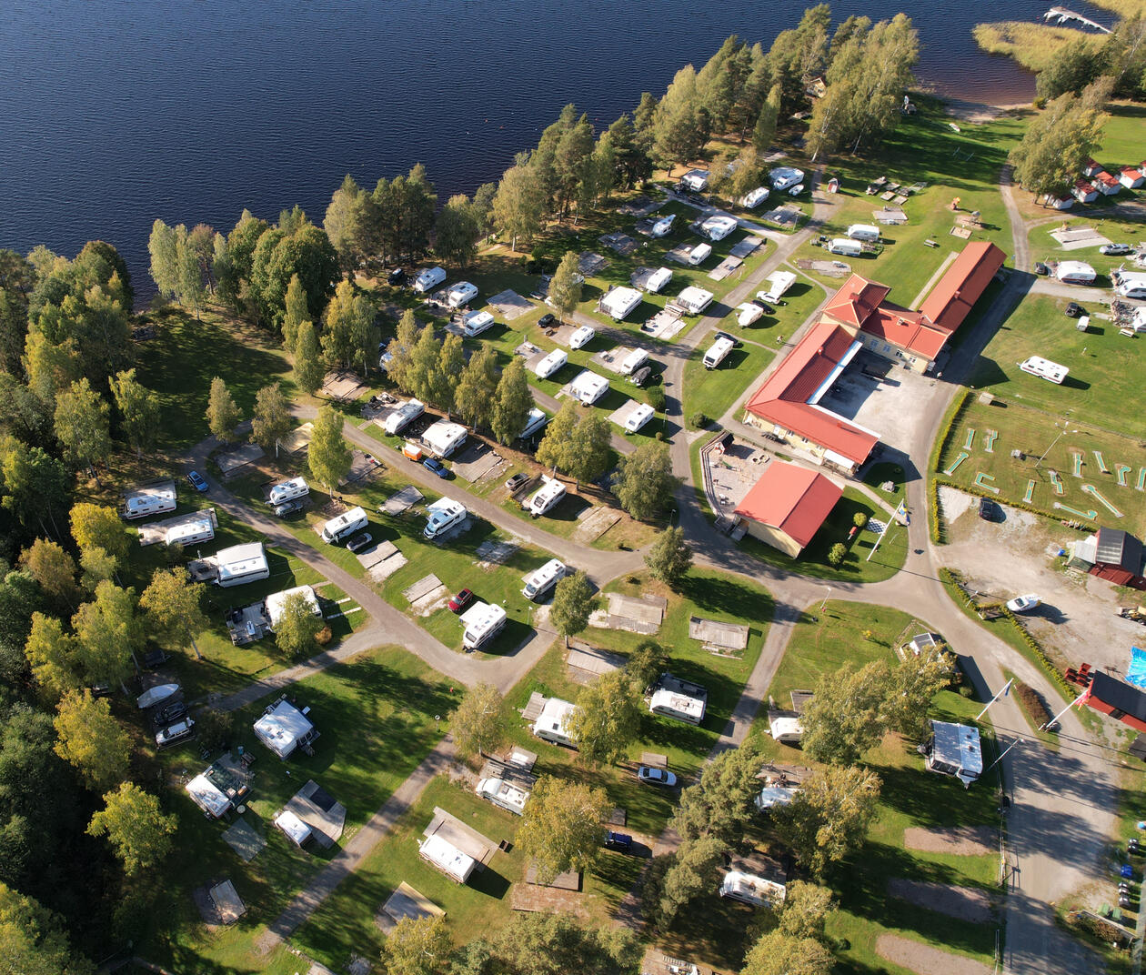 Drönarfilmen visar campingen Gusselby Annorlunda, belägen utanför Gusselby.